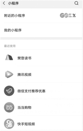 (1)点击进入微信“发现”界面中的“小程序”界面(见图5-7)。