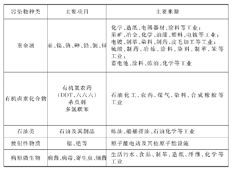 在排入海洋环境的废弃物中,无论是废水、废渣和废气,都含有多种有害或有毒物质,可以把它们统称为“海洋污染物”。根据污染物的性质和毒性,以及对海洋环境造成危害的方式,可以把它们分成几类: