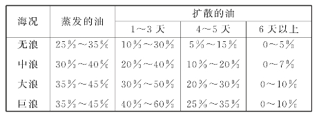 在油膜的扩散过程中,石油中的一部分轻组分迅速挥发到大气中。新鲜原油在2~3天内能挥发掉百分之二十五到三十以上(表2.2).