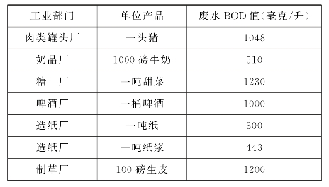 表2.5 不同工业部门单位产品废水中BOD5的量值