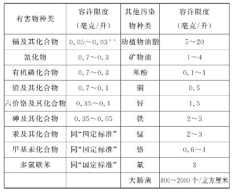 表4.5 我国工业废水量高容许排放标准*(毫克/升)