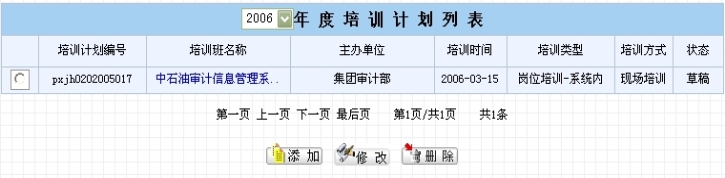 点击导航栏中的“添加培训计划”,右边页面显示出默认的计划列表,如图3.2-6所示。