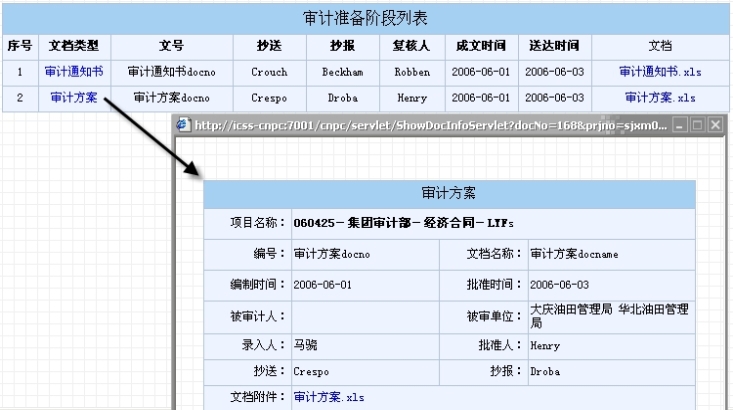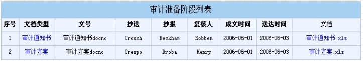 点击左边项目导航栏中的“审计准备阶段”,可以在右面的页面看到已提交的公文信息,如图4.1-22所示。