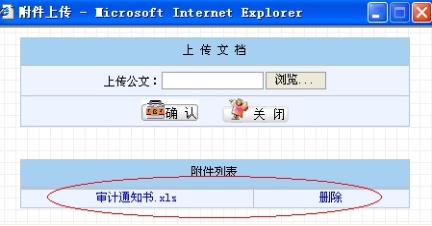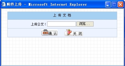 点击“浏览”按钮,选择要上传的公文附件。系统只接受大小在5MB之内的附件上传。选择完毕后点击“确认”按钮,系统提示上传文件成功,如图4.1-19所示。