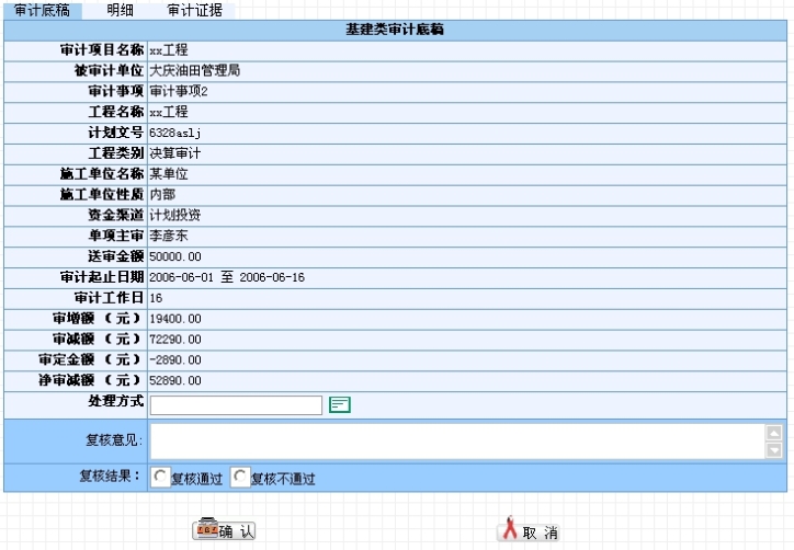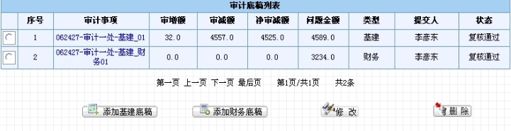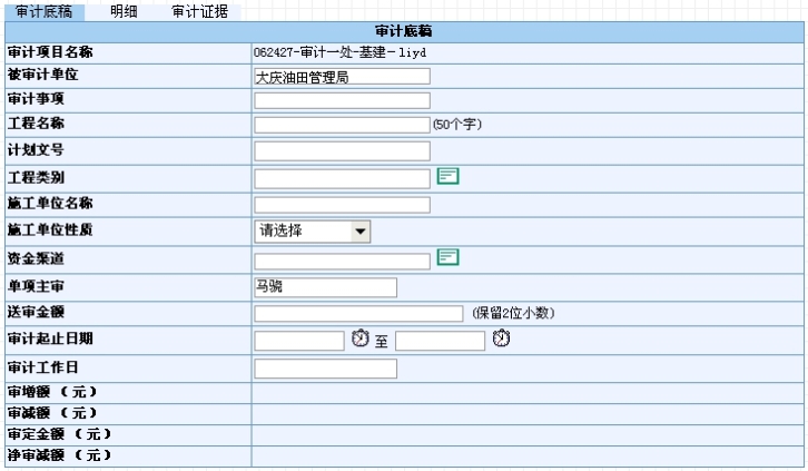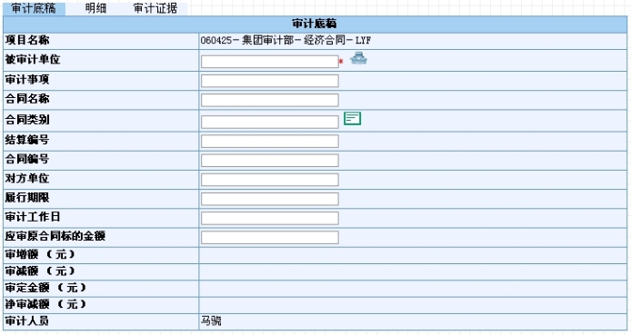 基建、合同类底稿添加底稿明细时,对于每次新增的明细的汇总金额,系统自动累计到对应底稿以及项目的对应数据项中。修改、删除底稿明细也会改变底稿和项目的相关的汇总数据。