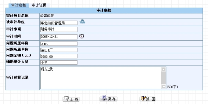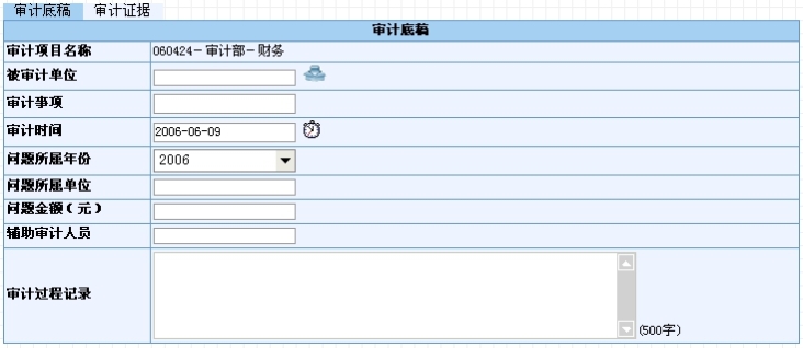 点击,保存当前底稿的信息。点击“审计证据”可以添加当前底稿对应的审计证据的文档。