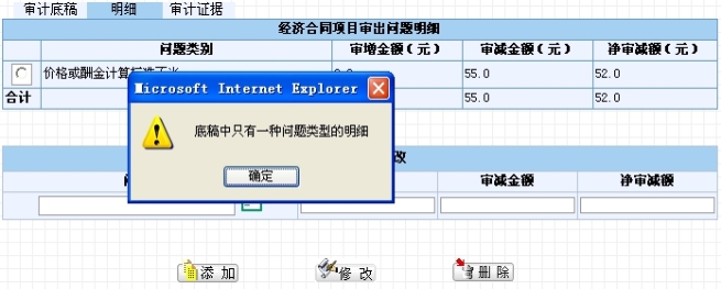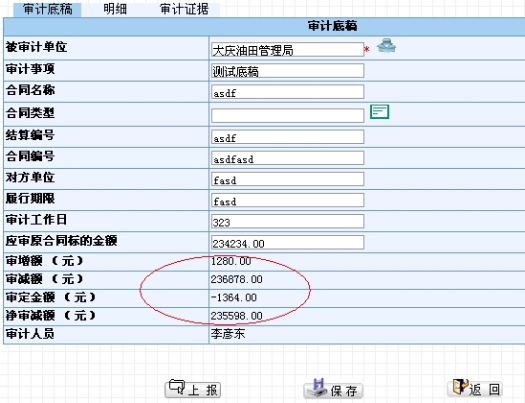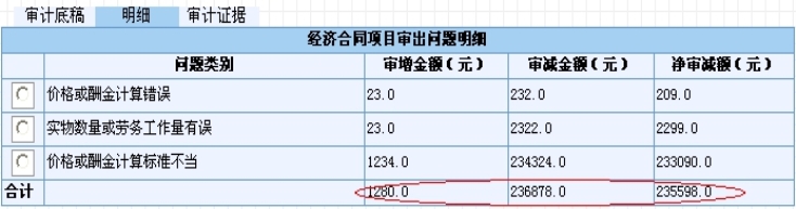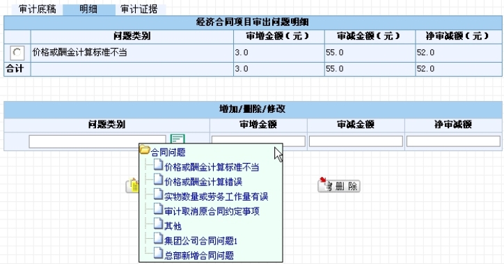 其中问题类别、审增额、审减额需要用户选择、填写,系统会自动计算净审减额,如图4.1-37和图4.1-38所示。
