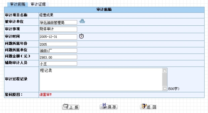 用户可以在修改操作中将底稿提交复核。底稿上报后,除非被驳回,否则底稿创建人将不能修改底稿内容。