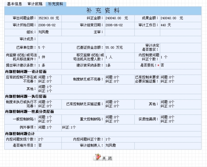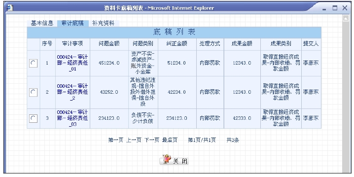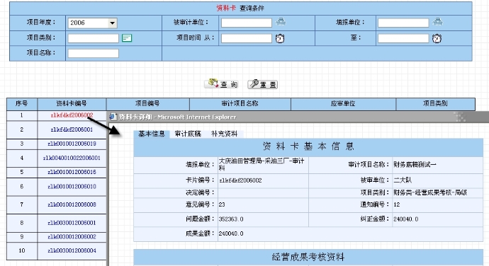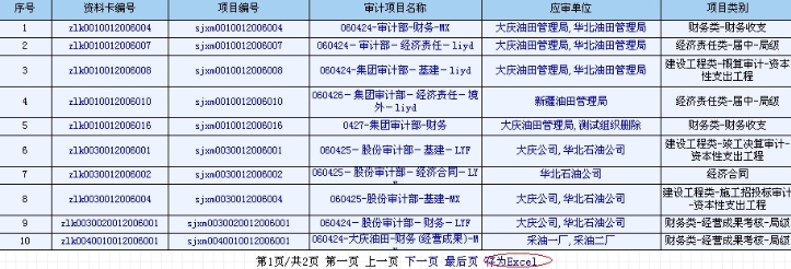 点击项目编号或项目名称都可以查看该项目的项目信息,点击被审单位名称可以查看被审单位的基本信息。具体操作参见项目查询的相关章节。