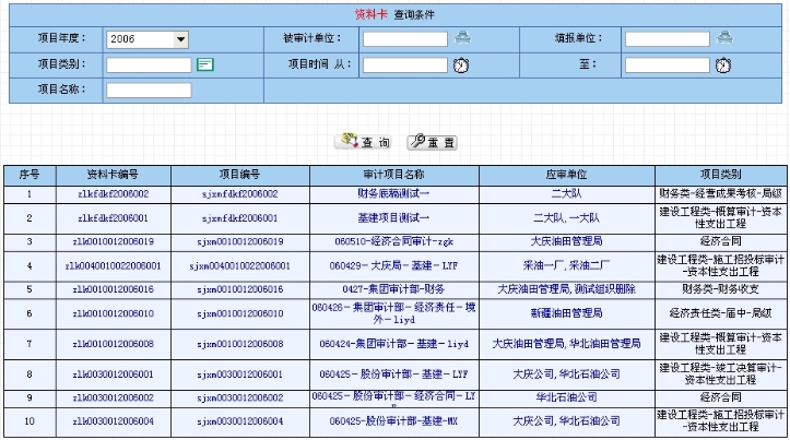 进行资料卡查询时,用户可以根据不同的查询条件查询相关的项目资料卡信息,如图5.3-1所示。关于查询条件,请参见项目列表部分的相关介绍。