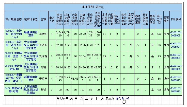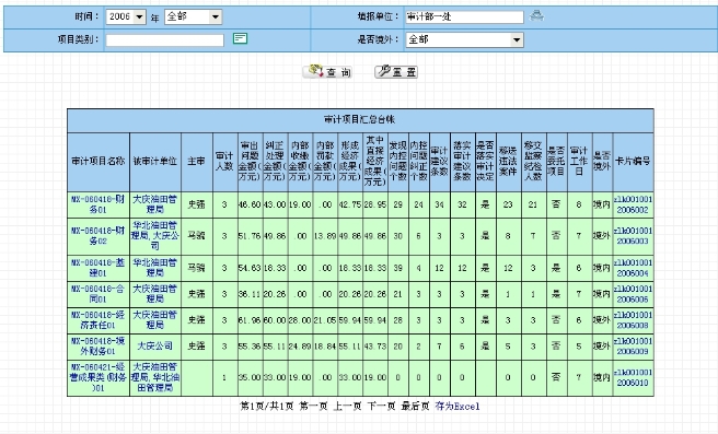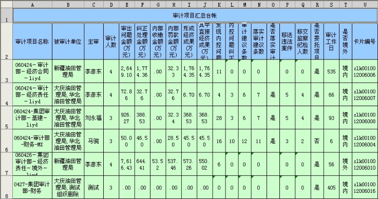 项目汇总台账是填报单位对所选年度内执行完毕的审计项目的数据汇总,从宏观上纵览项目的各项指标。