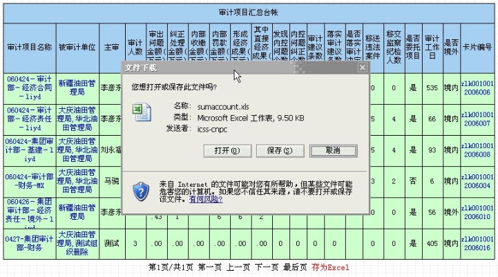 点击“存为Excel”,可以将所显示的台账内容存到Excel文件中,如图6.1-8~图6.1-10所示。