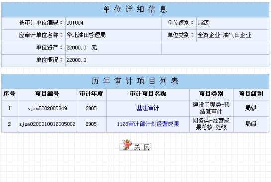 在图6.1-6中点击被审计单位,弹出的页面显示此被审单位的详细信息。