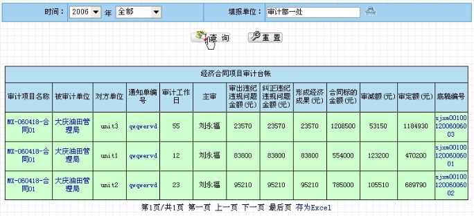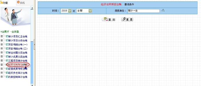 点击导航栏中的“经济合同项目台账”,右边页面显示出查询条件,包括时间、填报单位,如图6.1-29所示。