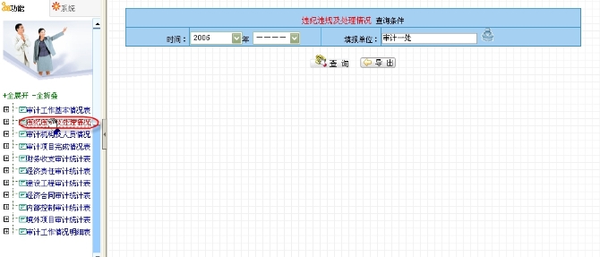 点击导航栏中的“违纪违规及处理情况表”,右边页面显示出查询条件,包括时间、填报单位,如图6.2-4所示。
