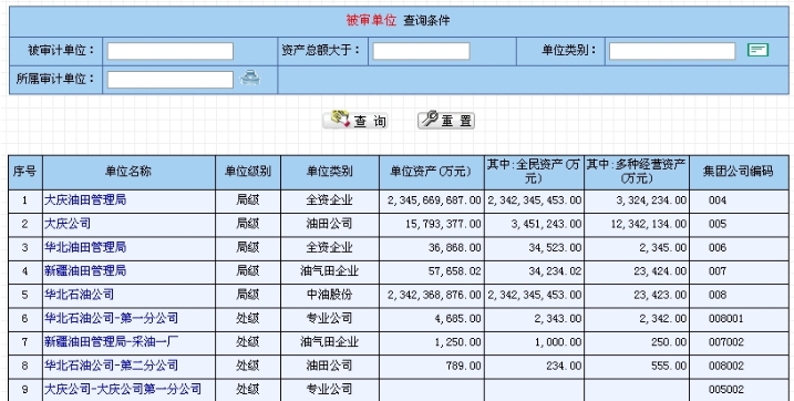 按条件查询被审计单位,查询范围参见7.1.1节概述。