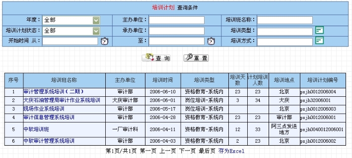 相关业务:查询一定范围内的各种状态的培训计划,这些计划在培训计划管理模块中管理。
