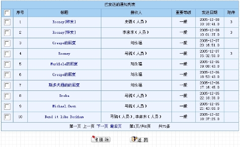 已发通知中列表显示了所有已经发送的信件信息,用户还可对已发信件进行转发。
