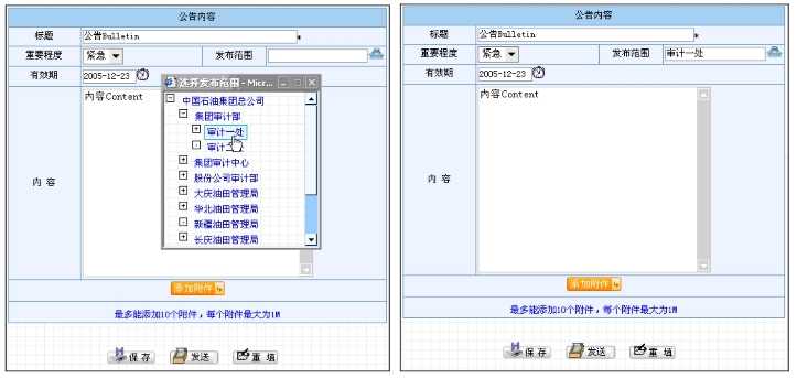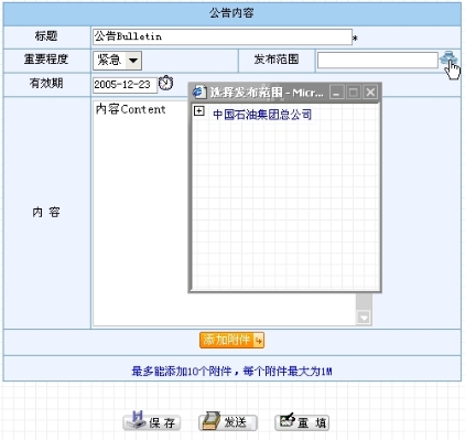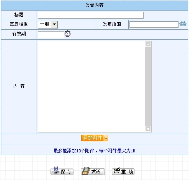 相关业务:用户发送的公告将转入“我发送的公告”、“公告管理”等模块中,并在“公告查看”等模块里被符合有效期和查看范围条件的用户所查看。