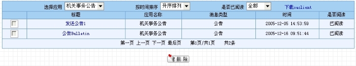 以升序的方式,不区别是否阅读地显示所有机关事务公告应用中的提示消息,如图8.5-2所示。