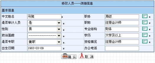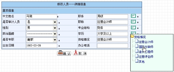 通过输入或者选择修改人员的详细资料,点击“确认”按钮即可修改其资料,如图9.2-5所示。