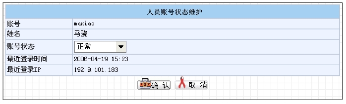 然后点击“确认”按钮即可,此时该人员账号状态已被更新,如图9.2-12所示。