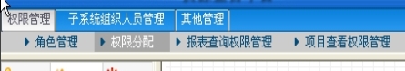 子系统管理员登录系统进行操作权限管理,权限管理包括两部分,一部分为子系统角色管理,一部分为角色授权。后者即是权限分配,子系统管理员查找出本子系统下的人员,逐个授权。