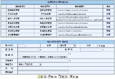 模块组增删改用以实现对模块组的添加、删除,以及对模块组详细信息进行修改。其操作过程同模块增删改操作。