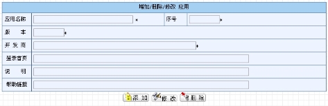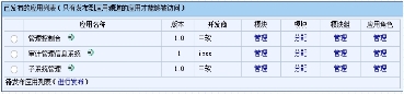 应用是软件开发商开发的应用软件,是多个模块的集合,具有相对独立的界面布局和一、二级菜单定义。应用管理用来实现对应用的添加、删除以及详细信息修改等功能,同时也对应用的模块及模块组进行相应注册、维护。