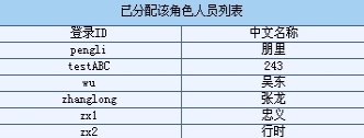 角色列表中,角色名称后有管理员图标的,表明是由系统管理员(webmaster)添加的角色。点击角色名称,系统会弹出窗口,显示已经分配了该角色的人员信息,如图10.4-4所示。