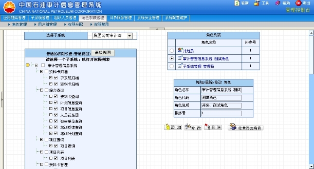 于是就能根据不同的子系统来管理所有的角色。如果以子系统管理员身份登录,就只能看见他所在的子系统,只能管理所在子系统下的角色。