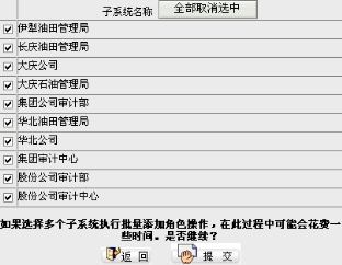 选择后提交,就会一次性将这个角色分配到已经选择的多个子系统中去。