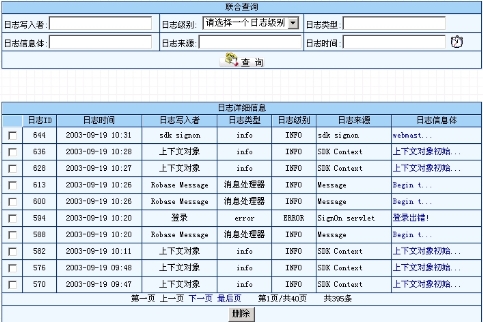 其中日志写入者、日志信息体、日志来源、日志类型四种类型是可以手工输入的。日志级别可通过下拉列表选择,日志时间可通过点击右边的时间控件按钮来选择。