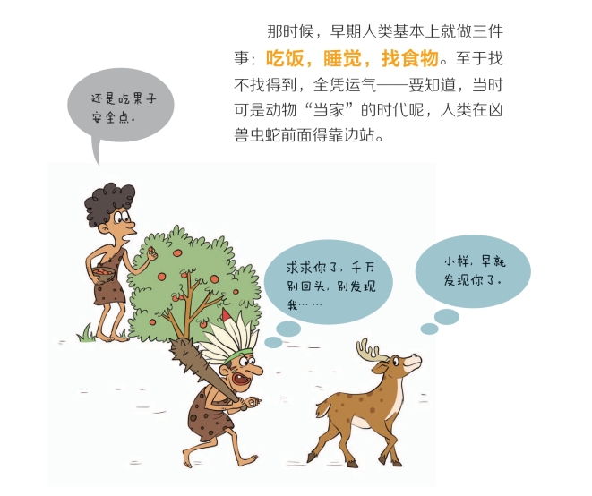 如果运气好,也许和同伴一起逮住了一头鹿。如果运气不好,就只能捡几个野果子,喝点西北风灌饱自己。