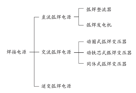 焊接电源按结构原理不同可分为交流弧焊电源、直弧焊电源和逆变式弧焊电源三种类型;按电流性质不同可分为直流电源(图1-6)和交流电源(图1-7)。具体分类如图1-8所示: