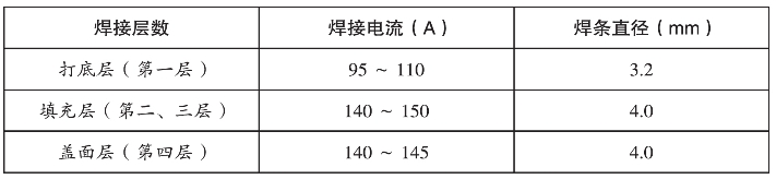 最后一层的高度应低于母材0.5~1 mm,注意不要将坡口两侧熔化。在焊接时,应控制整个坡口内的焊缝比坡口边缘低0.5~1.5 mm左右,最好略呈凹形,以便使盖面时能看清坡口边,不使焊缝高度超高。