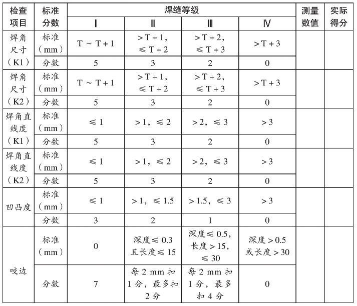 3.定位焊:组装成T形接头,并用90°角尺将工件测量准确后,再进行点固焊。