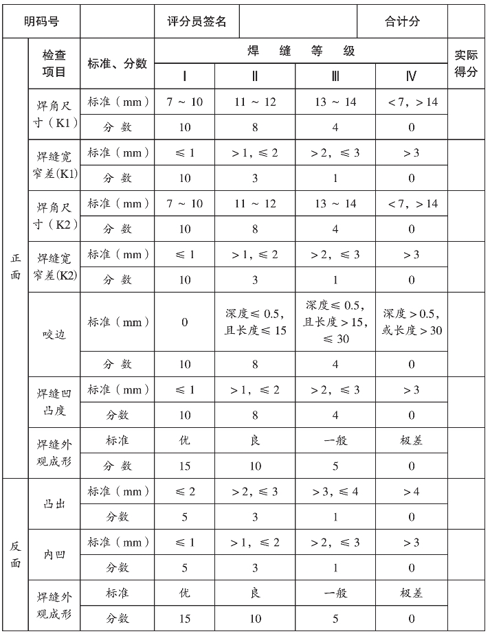 2.装配间隙:始端3 mm,终端4 mm;两端定位,定位焊长度20 mm,将焊点接头两端打磨成斜坡;焊角不可过高,成形平整无缺陷。