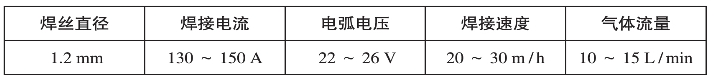 (2)焊接材料:焊丝H08Mn2SiA,直径1.2mm。