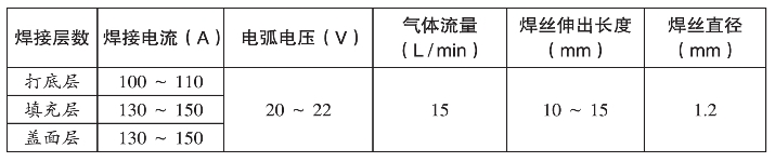 (2)焊件装配:钝边0~0.5 mm,装配间隙3~3.5 mm。