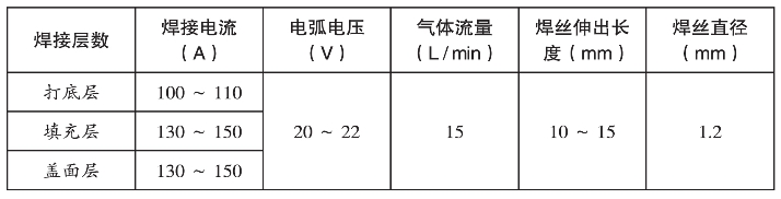 2.焊件装配:钝边0~0.5 mm,装配间隙3~3.5 mm。