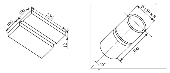 竞赛时间总计4小时,分为打磨、组对和试件焊接两个阶段。选手休息、饮水、上洗手间的时间包含在比赛时间之内,参赛选手必须在规定时间内独立完成所有项目。竞赛项目分为两大模块,竞赛项目详见表1,项目示意图见图1、图2。