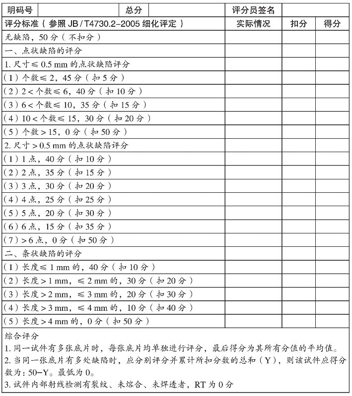 (2)未经监考裁判检查合格的上架固定试件,参赛选手擅自焊接上架固定试件,该试件判为0分。
