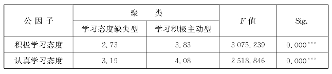 表3 不同聚类群体的旅游管理专业本科生学习态度的差异性分析