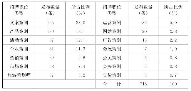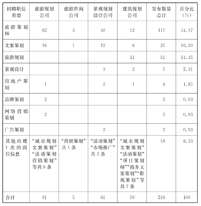 基于旅游策划岗位招聘信息的策划类岗位结构分析