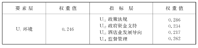 U4={U41,U42,U43,U44}={政策法规,政府资金支持,酒店业发展导向,监督管理};