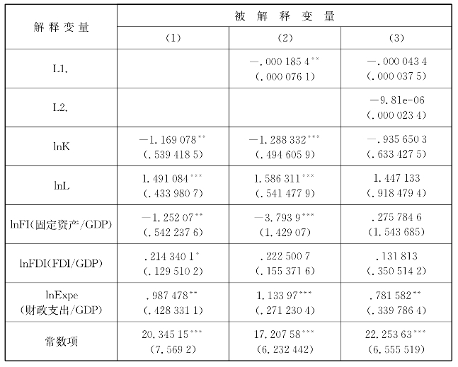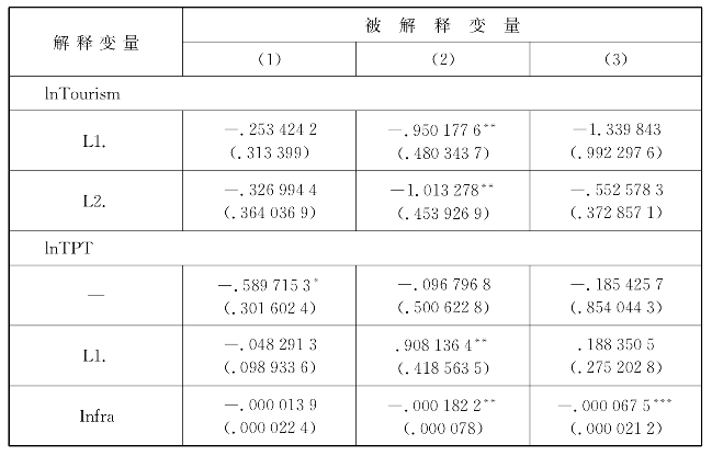 表1 基础设施影响城市土地旅游效率的估计结果(系统GMM)