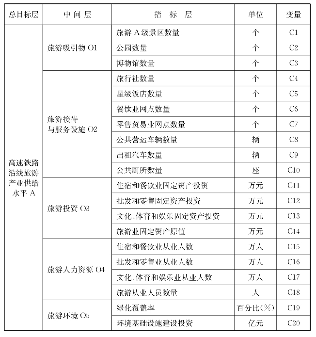表1 高速铁路沿线旅游产业供给水平指标体系