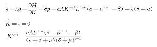 汉密尔顿函数为:H=AKαL1-α(α-teε-1)-Iv+λ(I-δK-μK)