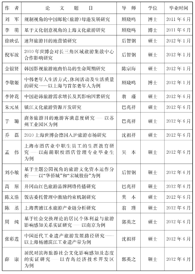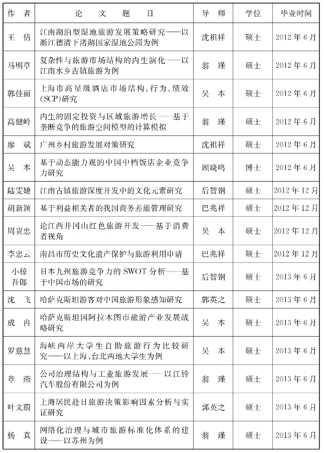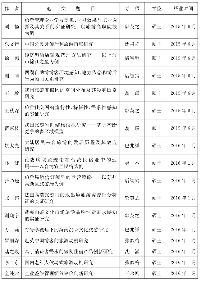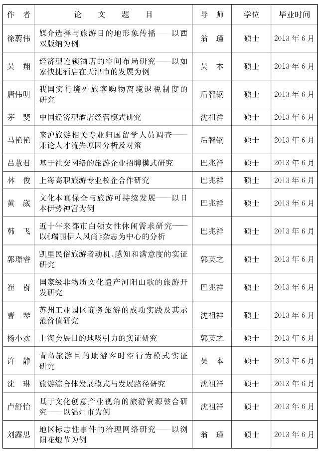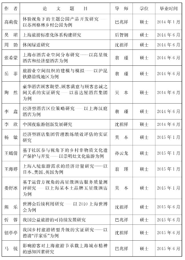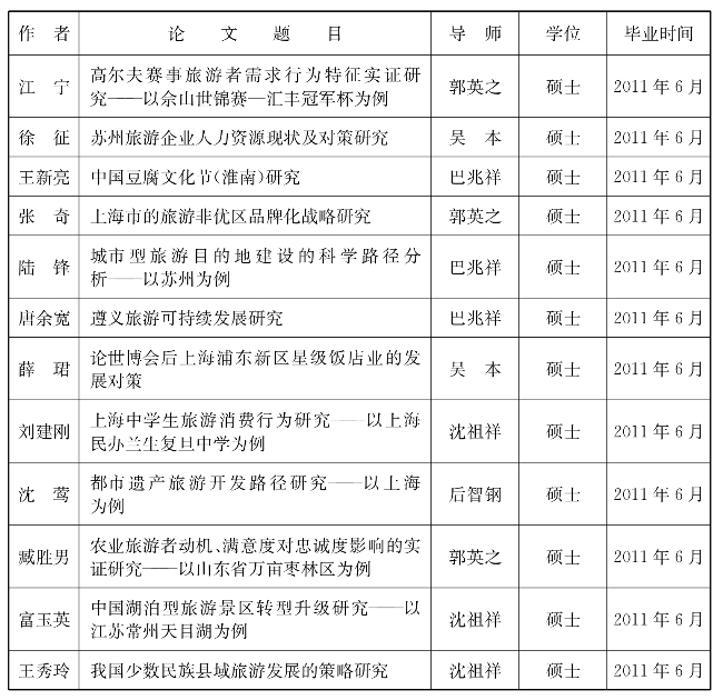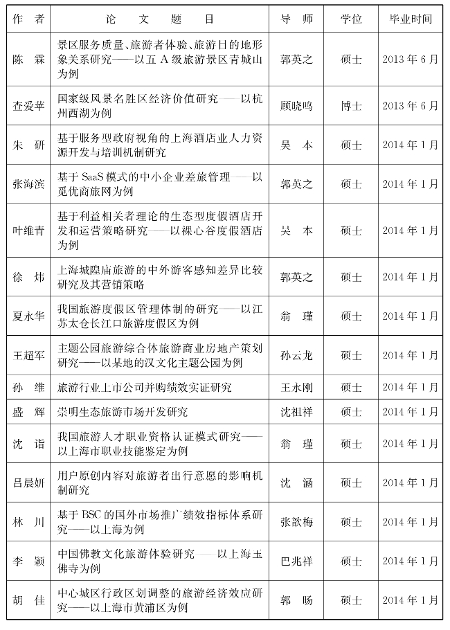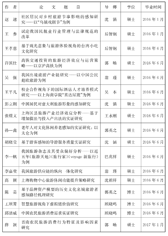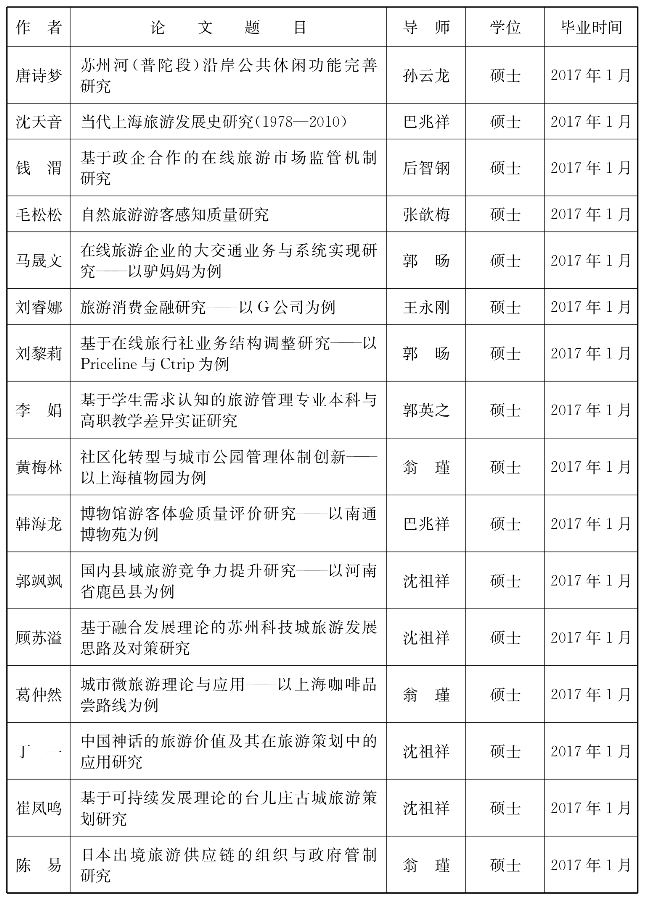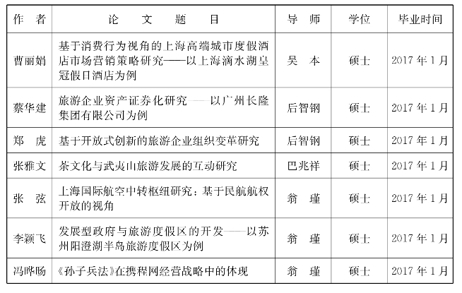 复旦大学旅游学系旅游管理硕博研究生学位论文目录(2011年6月—2017年1月)